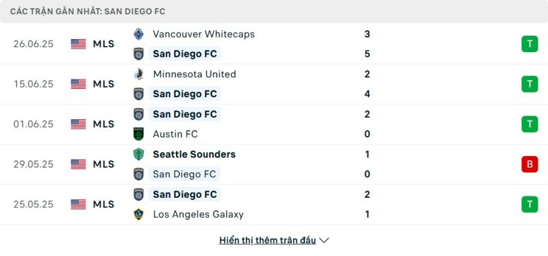 5 trận gần nhất của San Diego FC: W-W-W-L-W