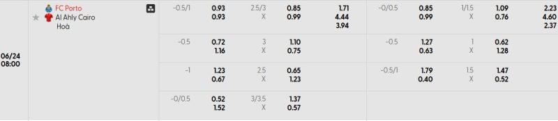 Bảng Tỷ lệ kèo bóng đá FC Porto vs Al Ahly FC