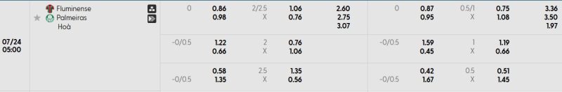 Bảng Tỷ lệ kèo bóng đá Fluminense vs Palmeiras