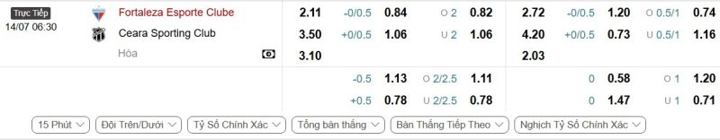Bảng Tỷ lệ kèo bóng đá Fortaleza vs Ceará