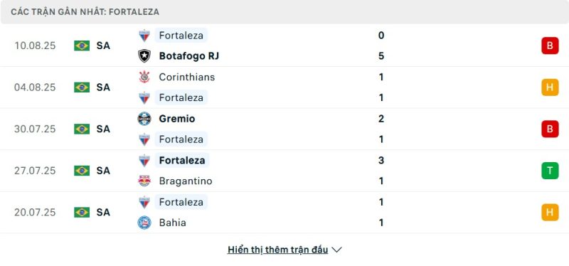 5 trận gần nhất của Fortaleza: L-D-L-W-D