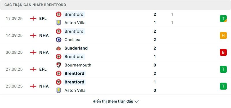 Bên kia chiến tuyến, Brentford đang đứng ngay sau Fulham trên bảng xếp hạng ở vị trí thứ 12 với 4 điểm. Phong độ của “Bầy Ong” trong giai đoạn đầu mùa giải là khá thất thường, với 1 trận thắng, 1 trận hòa và 2 trận thua. Điểm nhấn đáng chú ý nhất của họ là trận hòa 2-2 đầy quả cảm trước Chelsea, cho thấy khả năng tấn công đáng gờm. Tuy nhiên, những trận thua trước Nottingham Forest và Sunderland cũng bộc lộ những điểm yếu ở hàng phòng ngự. Brentford đã ghi được nhiều bàn thắng hơn Fulham nhưng cũng để thủng lưới nhiều hơn.