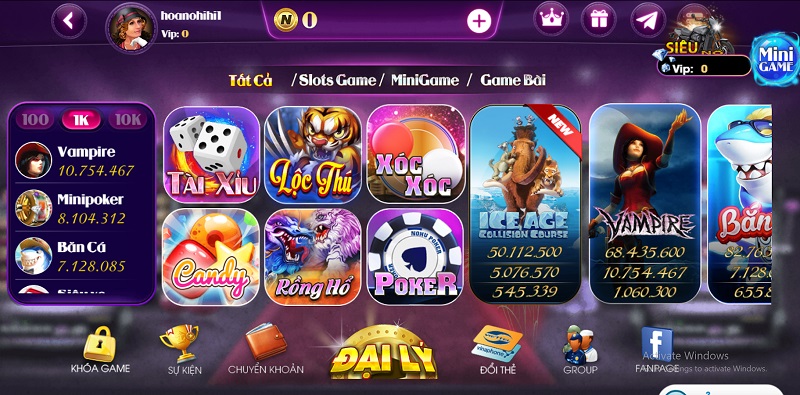 Mini game: Xóc đĩa, Lộc thú, Lô đề, Candy, Mini Poker, Tài xỉu, Siêu xe,…..