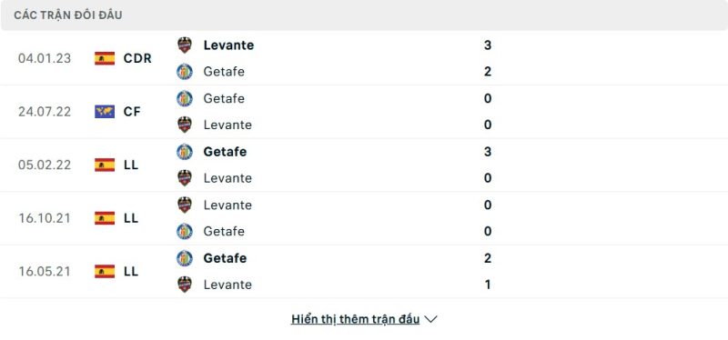 Bảng Tỷ lệ kèo bóng đá Getafe vs Levante