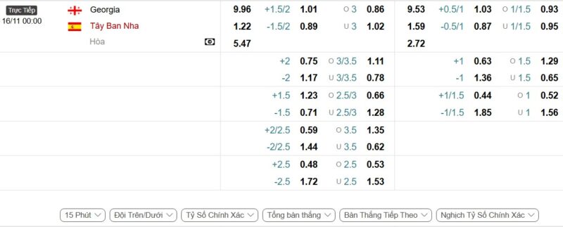 Bảng Tỷ lệ kèo bóng đá Gruzia vs Tây Ban Nha