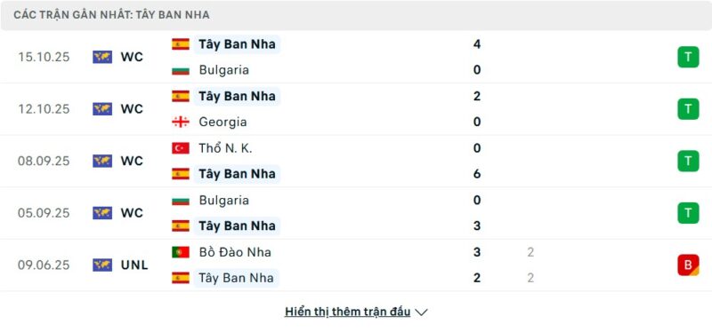 Tây Ban Nha đang thể hiện sức mạnh vượt trội tại bảng E khi toàn thắng cả bốn trận và chưa để thủng lưới. Hiệu số ấn tượng cùng những chiến thắng thuyết phục trước Bulgaria, Türkiye và đặc biệt là chiến thắng trên sân Gruzia cho thấy họ đang ở đúng quỹ đạo. Đội bóng thi đấu kỷ luật, kiểm soát bóng tốt và luôn duy trì áp lực lớn lên đối thủ. Phong độ gần đây ở Nations League cũng rất ổn định, với việc đánh bại những đội mạnh như Pháp hay cầm hòa Hà Lan trong thế trận giàu tính cạnh tranh. Tất cả đều củng cố vị thế dẫn đầu của họ.