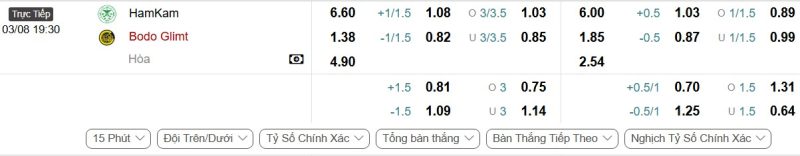 - Kèo tỷ số Full Time: HamKam 0-1 Bodø/Glimt