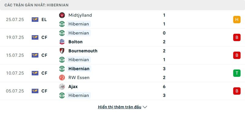 Thống kê phong độ gần đây Hibernian vs Midtjylland