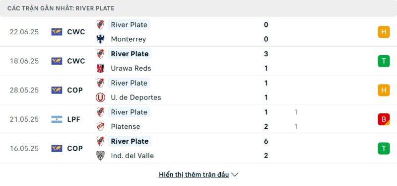 Bên kia chiến tuyến, River Plate cũng sở hữu chuỗi hai trận bất bại, khởi đầu bằng chiến thắng 3-1 trước Urawa và sau đó cầm hòa Monterrey 0-0 trong trận đấu có phần thận trọng. Đại diện Nam Mỹ thi đấu ổn định với lối chơi kiểm soát tốt, phản công sắc bén. Họ cho thấy sự đa dạng trong cách tiếp cận trận đấu và có khả năng xoay chuyển thế trận nhờ tuyến giữa năng động. Dưới sự chỉ đạo của HLV Marcelo Gallardo, River đang giữ được tính tổ chức cao và rất biết cách tận dụng cơ hội trước các đối thủ ngang tầm.