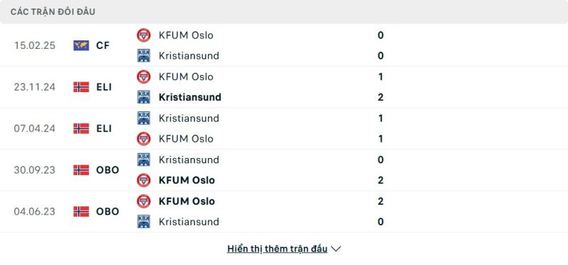 Thống kê phong độ gần đây Kristiansund vs KFUM