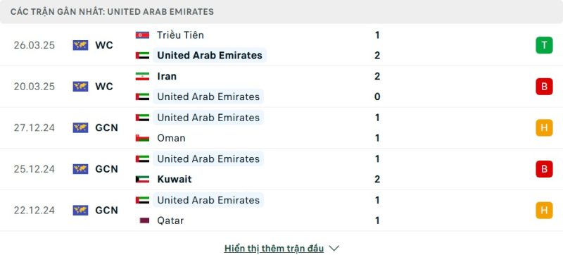 Lịch sử đối đầu giữa hai đội cũng nghiêng hẳn về phía UAE. Trong 3 lần gặp nhau gần nhất, UAE giành 2 chiến thắng, một trận hòa, và 2 trong số đó có trên 2 bàn thắng được ghi. Điều đó cho thấy sự chênh lệch về mặt chiến thuật và hiệu quả tấn công giữa hai đội. Sân Dolen Omurzakov có thể là điểm tựa tinh thần cho Kyrgyzstan, nhưng trước một đối thủ mạnh hơn cả về con người lẫn kinh nghiệm, lợi thế này không đủ để giúp họ san bằng khoảng cách.