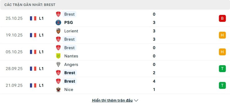 Bảng Tỷ lệ kèo bóng đá Le Havre vs Brest