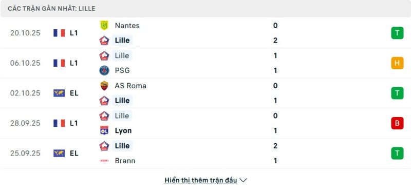 Lille đang có phong độ khá ổn định trong thời gian gần đây với chuỗi kết quả khả quan ở cả Ligue 1 lẫn Europa League. Sau 8 vòng đấu, thầy trò HLV Bruno Genesio đang góp mặt trong nhóm nửa trên bảng xếp hạng. Họ giành chiến thắng trước Nantes, Toulouse và Lorient, đồng thời cầm hòa PSG trong thế trận ngang ngửa. Tuy nhiên, thất bại trước Lyon và PAOK cho thấy đội vẫn còn thiếu sự tập trung ở những thời điểm quan trọng. Dẫu vậy, lối chơi kỷ luật và sự linh hoạt trong chiến thuật vẫn giúp Lille duy trì phong độ vững vàng.