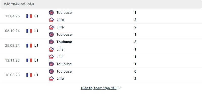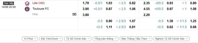 Bảng Tỷ lệ kèo bóng đá Lille vs Toulouse
