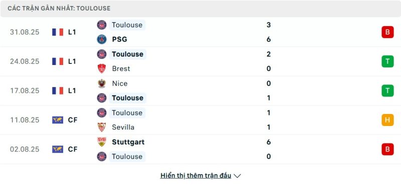 Toulouse gần đây thi đấu khá đa dạng, đặc biệt ở khâu tấn công với những pha lên bóng tốc độ. Họ thường tận dụng các đợt phản công nhanh để gây khó khăn cho hàng thủ đối phương. Dù còn thiếu sự chắc chắn ở tuyến phòng ngự, Toulouse vẫn biết cách tận dụng cơ hội ghi bàn từ những tình huống cố định. Điểm mạnh của họ là tinh thần chiến đấu không bỏ cuộc, giúp duy trì áp lực đến phút cuối. Sự gắn kết trong lối chơi và khát khao thể hiện tại Ligue 1 giúp Toulouse trở thành đối thủ khó chịu cho bất kỳ đội bóng nào.