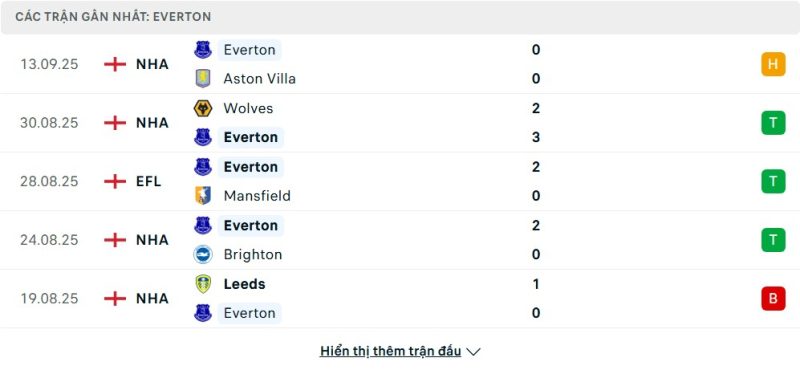 Bên kia chiến tuyến, Everton cũng đang duy trì một sự ổn định cần thiết. Đội bóng của HLV David Moyes hiện đứng thứ 6 trên bảng xếp hạng với 7 điểm sau bốn vòng đấu. Mặc dù có hai chiến thắng quan trọng, nhưng Everton cũng đã để thua Leeds và chỉ có một trận hòa không bàn thắng trước Aston Villa. Lối chơi của họ dựa nhiều vào sự chắc chắn ở hàng thủ và khả năng phản công nhanh. Dù thiếu sự bùng nổ, nhưng Everton luôn là đối thủ khó chịu cho bất kỳ đội bóng nào trong mùa giải này.