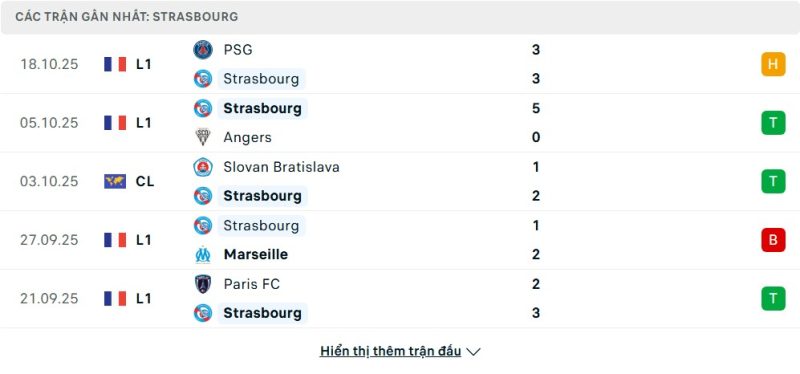 5 trận gần nhất của Strasbourg: D-W-W-L-W