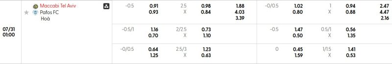 Bảng Tỷ lệ kèo bóng đá Maccabi Tel Aviv vs Pafos FC