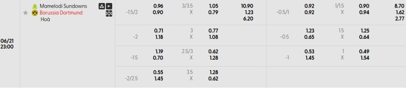 Bảng Tỷ lệ kèo bóng đá Mamelodi Sundowns vs Borussia Dortmund