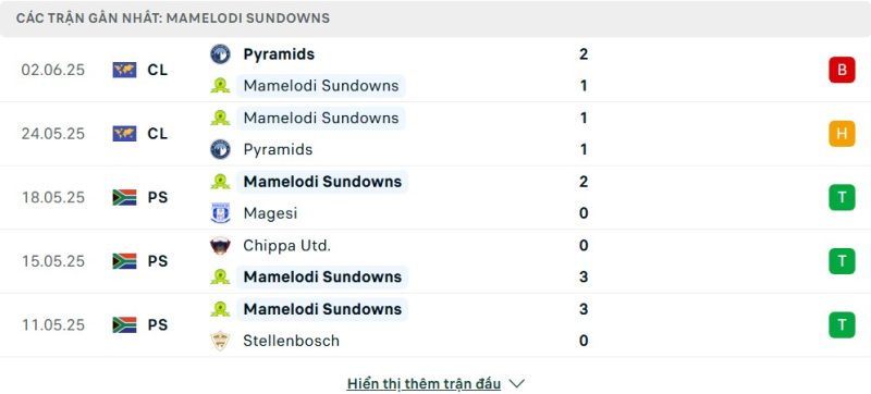 Xét về phong độ gần đây, Mamelodi Sundowns dù vẫn là thế lực lớn tại Nam Phi nhưng khi bước ra sân chơi quốc tế, họ vẫn là ẩn số. Trong 10 trận gần nhất trên mọi đấu trường, đội bóng của HLV Miguel Cardoso giành được 6 chiến thắng, 3 trận hòa và 1 thất bại. Đáng chú ý là hàng thủ của họ đã giữ sạch lưới tới 5 trận. Tuy nhiên, phần lớn các trận thắng đó đều đến từ giải quốc nội, nơi trình độ các đối thủ không thể so sánh với những đội bóng châu Âu.