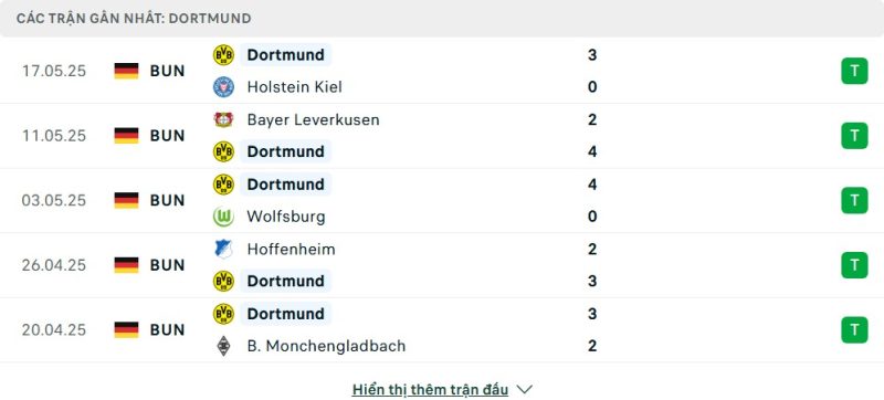 5 trận gần nhất của Borussia Dortmund: W-W-W-W-W