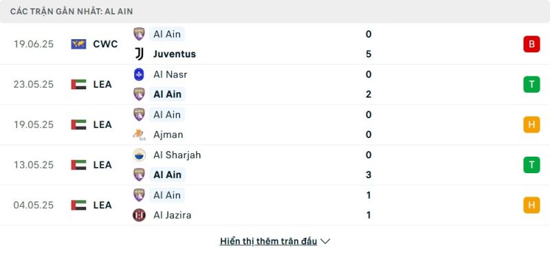 5 trận gần nhất của Al-Ain: L-W-D-W-D