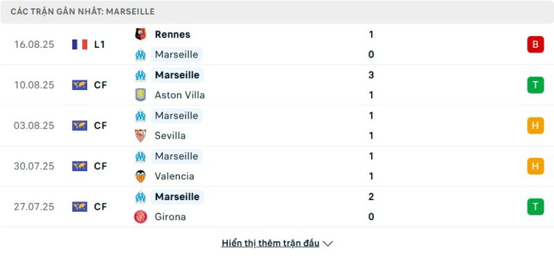 5 trận gần nhất của Marseille: L-W-D-D-W
