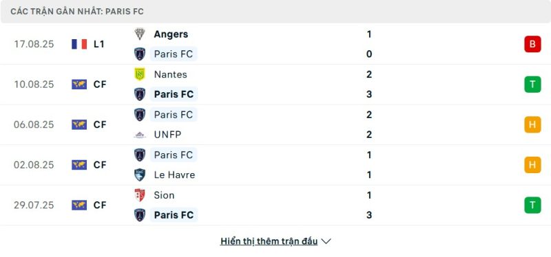 Thống kê phong độ gần đây Marseille vs Paris FC