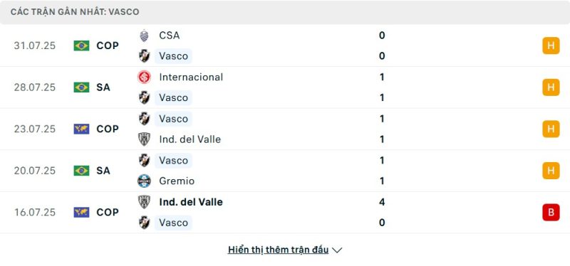 Bên kia chiến tuyến, Vasco da Gama cũng không hề kém cạnh. Mặc dù đứng ở vị trí thứ 16 trên bảng xếp hạng, nhưng họ đang có dấu hiệu khởi sắc. 5 trận gần nhất trên mọi đấu trường, Vasco da Gama có 4 trận hòa và 1 trận thua. Các trận hòa của họ đều diễn ra với tỷ số 1-1, cho thấy sự cân bằng và khả năng phòng ngự đáng nể. Hàng thủ của họ thi đấu tập trung hơn, trong khi hàng công vẫn duy trì được sự sắc bén cần thiết.