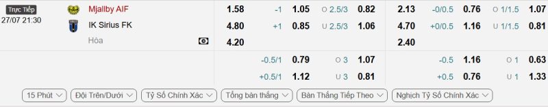 Bảng Tỷ lệ kèo bóng đá Mjällby AIF vs IK Sirius