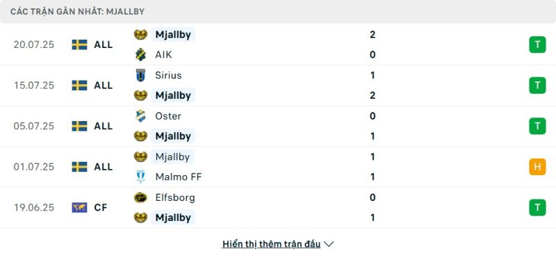 Thống kê phong độ gần đây Mjällby AIF vs IK Sirius