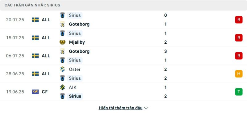 Bên kia chiến tuyến, IK Sirius đang lâm vào khủng hoảng khi tụt xuống vị trí thứ 13 với chỉ 13 điểm. Đội bóng này đã toàn thua 3 trận gần nhất, trong đó có thất bại 1-2 ngay trên sân nhà trước chính Mjällby hôm 15/7. Dù từng có những chiến thắng tích cực hồi tháng 6, nhưng sự yếu kém nơi hàng thủ với 28 bàn thua khiến họ bị cuốn vào cuộc chiến trụ hạng. Phong độ sân khách của Sirius cũng không mấy ấn tượng.