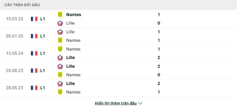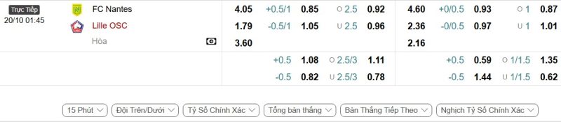 Bảng Tỷ lệ kèo bóng đá Nantes vs Lille