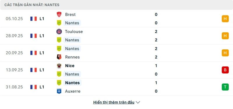 Nantes đang trải qua khởi đầu mùa giải khá chật vật khi mới có 6 điểm sau 7 vòng đấu, xếp ở vị trí thứ 15 trên bảng xếp hạng. Dù vậy, đội bóng này vẫn giữ được phần nào sự kiên cường khi liên tiếp hòa trong ba trận gần nhất trước Toulouse, Brest và Rennes. Nantes từng giành chiến thắng trước Auxerre nhưng cũng đã để thua nhiều trận đáng tiếc trước Nice, Strasbourg và PSG. Phong độ sân nhà của họ không quá tệ, song sự thiếu ổn định trong khâu ghi bàn khiến Nantes khó tạo ra khác biệt trước các đối thủ mạnh hơn như Lille ở vòng này.