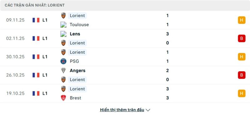 - Phong độ của Lorient