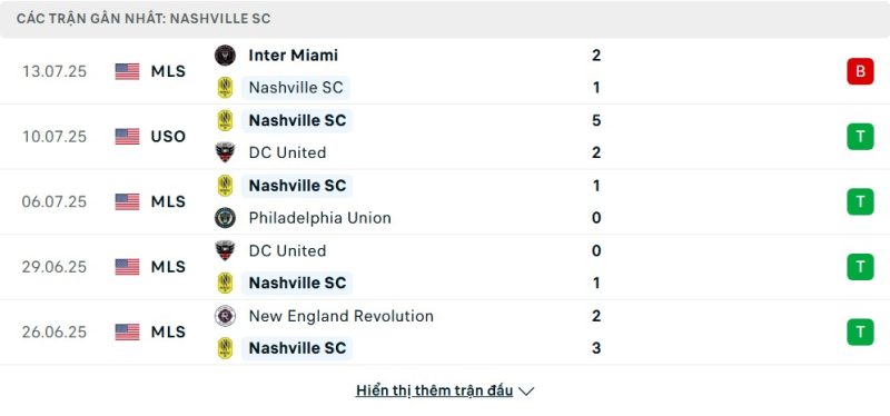 Thống kê phong độ gần đây Nashville SC vs Columbus Crew