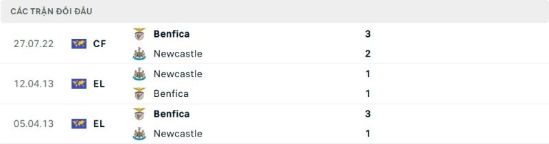 Thống kê phong độ gần đây Newcastle United vs Benfica
