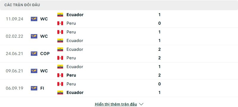 Lịch sử gần đây cho thấy các trận đấu giữa Peru và Ecuador thường diễn ra khá chặt chẽ và ít bàn thắng. Hai lần gặp nhau gần nhất giữa hai đội đều không có quá 2 bàn được ghi. Đây là điều dễ hiểu bởi cả hai đều chọn cách tiếp cận trận đấu một cách thận trọng khi gặp nhau, đặc biệt là khi Peru có lợi thế sân nhà nhưng không thực sự áp đảo về chất lượng. Mức kèo tài xỉu mà nhà cái niêm yết là 2 với tỷ lệ cho tài là 0.93, tỷ lệ cho xỉu là 0.91, người chơi nên đặt niềm tin vào cửa xỉu cho trận đấu này.