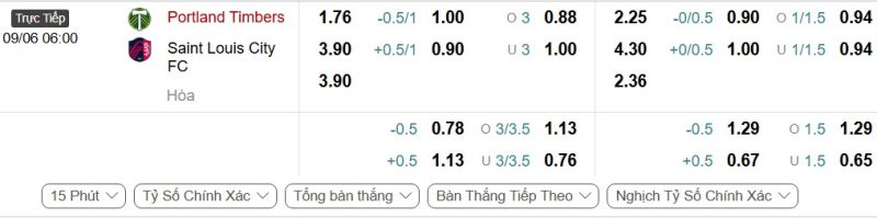 Bảng Tỷ lệ kèo bóng đá Portland Timbers vs St.Louis City