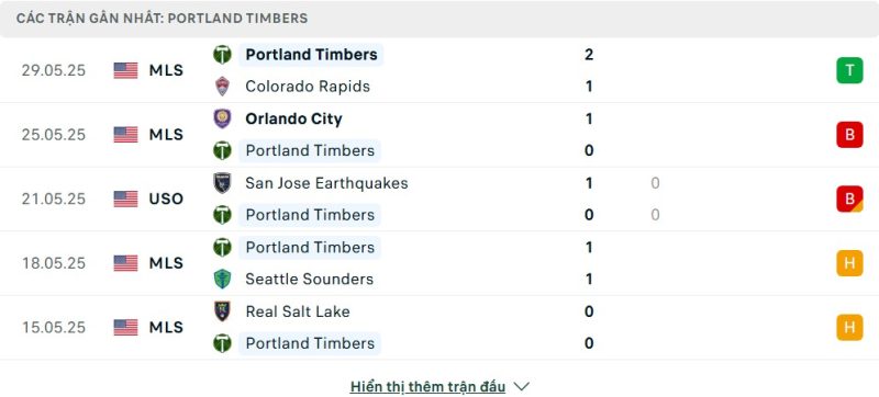- Phong độ của Portland Timbers