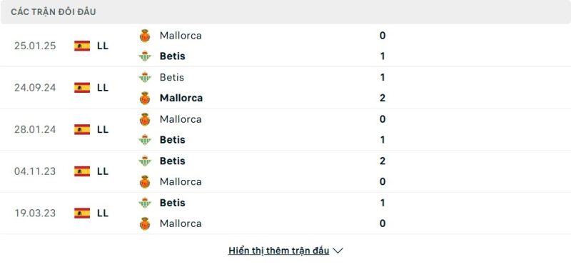 Thống kê phong độ gần đây Real Betis vs Mallorca