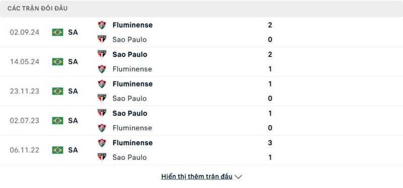 Thống kê phong độ gần đây São Paulo vs Fluminense
