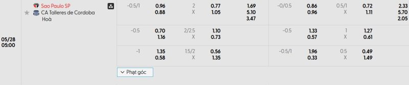 Bảng Tỷ lệ kèo bóng đá São Paulo vs Talleres