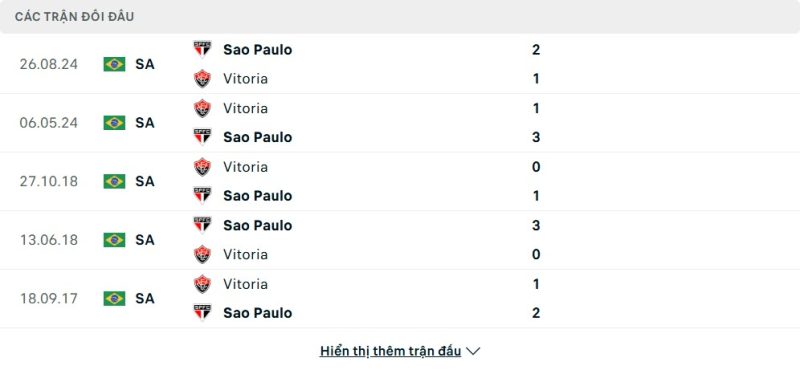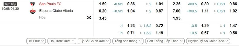 Bảng Tỷ lệ kèo bóng đá São Paulo vs Vitória