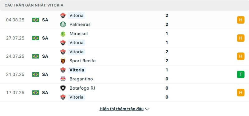Thống kê phong độ gần đây São Paulo vs Vitória