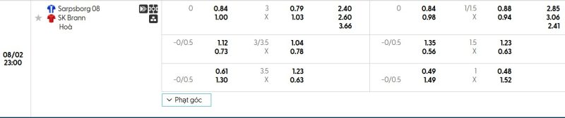 Bảng Tỷ lệ kèo bóng đá Sarpsborg vs Brann