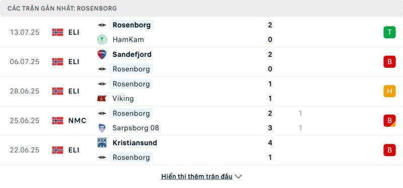 5 trận gần nhất của Rosenborg: W-L-D-D-L