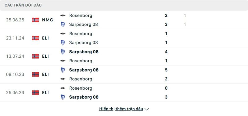 Thành tích đối đầu của Sarpsborg vs Rosenborg