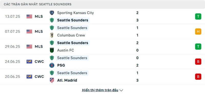 Thống kê phong độ gần đây Seattle Sounders FC vs Colorado Rapids
