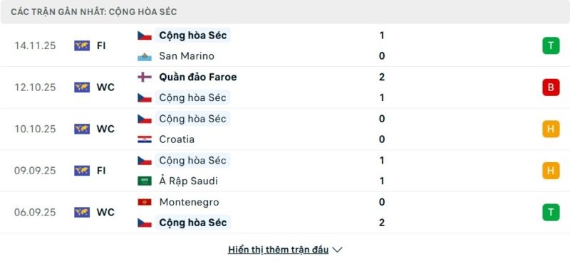 Thống kê phong độ gần đây Séc vs Gibraltar